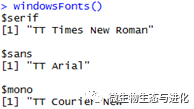 family:设置字体,需要配合windowsFonts()函数使用,首先查看已经安装的字体:
