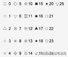 pch:指定绘制点所使用的符号,取值范围[0,24],如下所示: