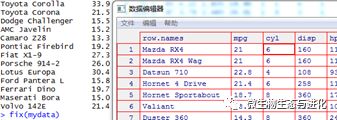 如果要修改数据框中已有的数据和变量名,可以使用fix()函数,该函数可以调用文本编辑器然后使用键盘来对数据框进行修改,如下所示: