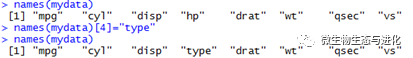 使用names()函数可以调用或重新赋值变量名,如下所示: