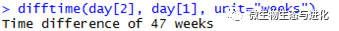 函数difftime()可以用来计算时间间隔,还可以自定义显示单位(周、天、时、分、秒),如下所示: