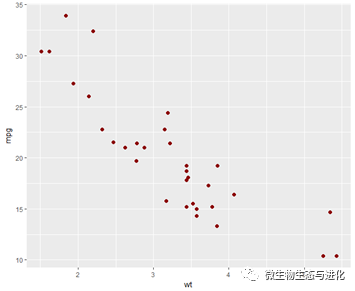 geom_point(color="darkred", size=2)