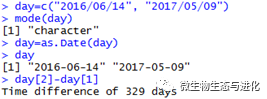 在R中,日期往往以数值形式存储,日期值可以运算比较,但是在读取数据时往往读取为字符串格式,as.Date()函数可以将字符型日期转换为数值型进行储存,如下所示: