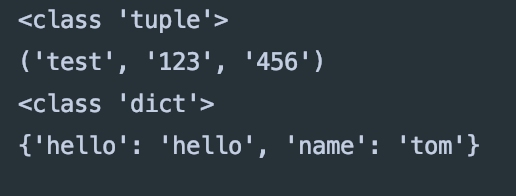 parseArgs("test","123",'456',hello="hello",name='tom')