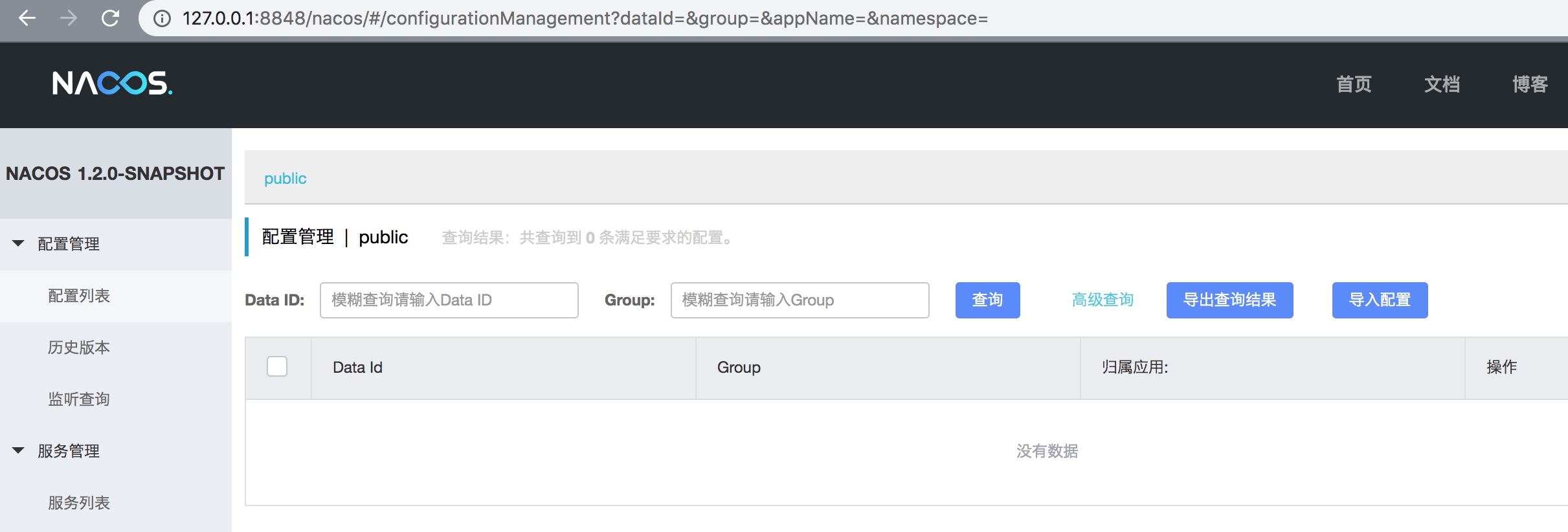 应用启动之后,访问 http://127.0.0.1:8848/nacos/,Nacos0.8 版本已经支持简单登录功能,默认用户名/密码为: nacos/nacos。