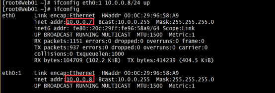 ip addr add 10.0.0.9/24 label eth0:2 dev eth0(使用ifconfig和ipaddr都能查看,推荐使用)