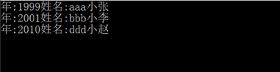 20 Console.Write("年:" + item.year + "姓名:" + item.name);