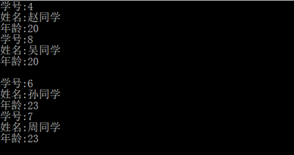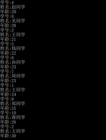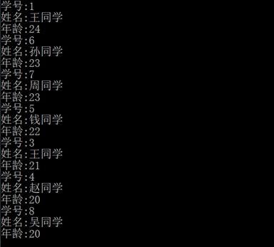 18 Console.Write("学号:" + item.Id + "\n姓名:" + item.Name + "\n年龄:" + item.Age);