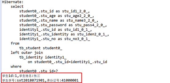 List<Student> students = query.getResultList(); for (Student student : students) { System.out.println("学生姓名:"+student.getStuName()+",学生id:"+student.getStuId());