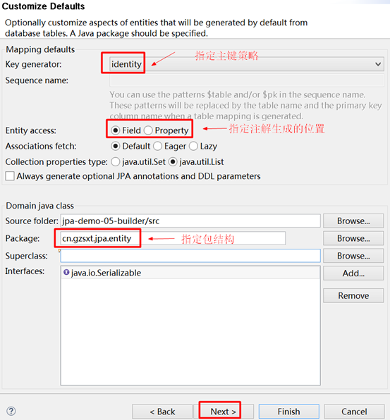 6.2.2.3 Step3:指定生成实体类的名称及结构