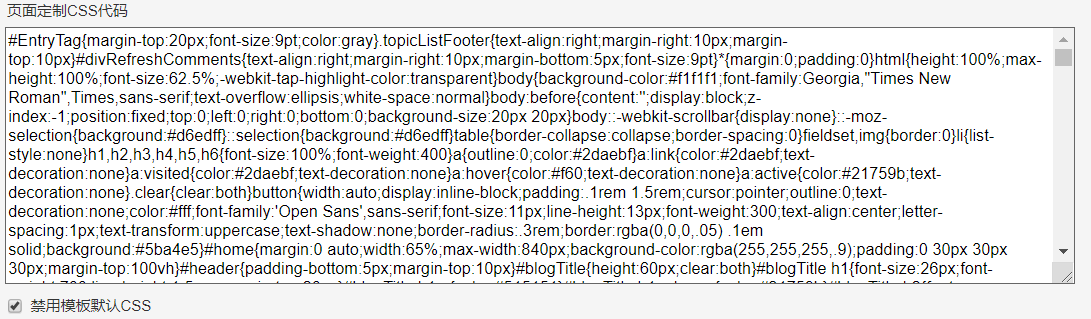 勾选上【禁用模板默认 CSS 】,填上自己整理的 CSS 代码,如下:
