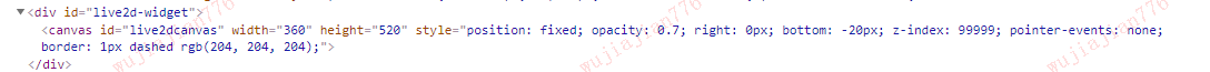 如果想修改萝莉的css样式,页面具体HTML元素ID是 live2dcanvas,如下图,点击图片放大。根据这个元素ID可以自定义重写CSS样式。