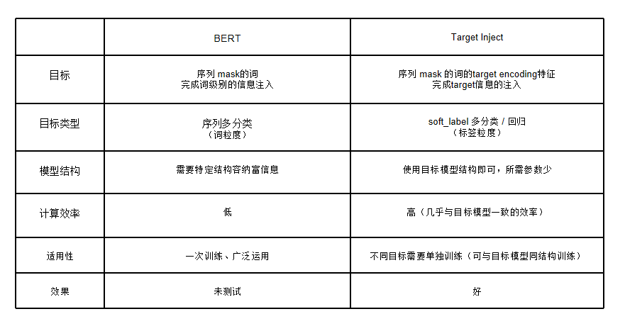 BERT 可以实现将词级别的完整信息注入,理想情况下可获得单个词的丰富的多维度信息,而针对当前场景,是否可以实现一种只将target 紧密相关的信息注入的方法?从而大幅度降低模型规模。