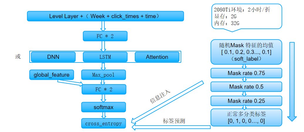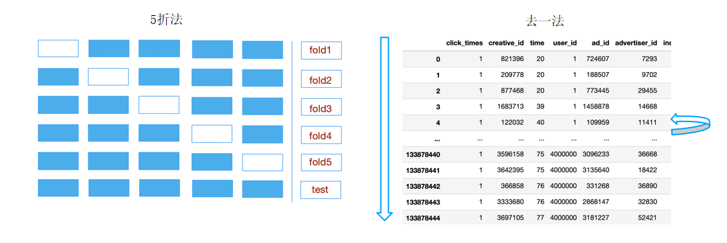 最直接的做法:构建标签预测解,由模型实现平滑,并结合特征矫正。Kfold:将样本划分为k份,对于其中每一份数据,我们都用另外k-1份数据提取标签分布特征,复杂度K * On;去一法:统计全局概率分布,去除当前行样本复杂度On