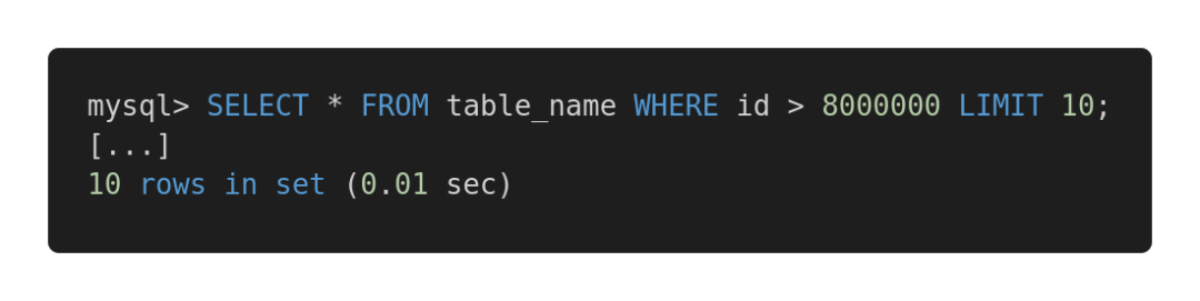 为什么?因为通过显式告知数据库最新行,数据库就确切地知道从哪里开始搜索(基于有效的索引),而不需要考虑目标范围之外的记录。