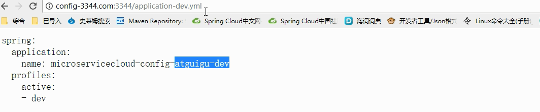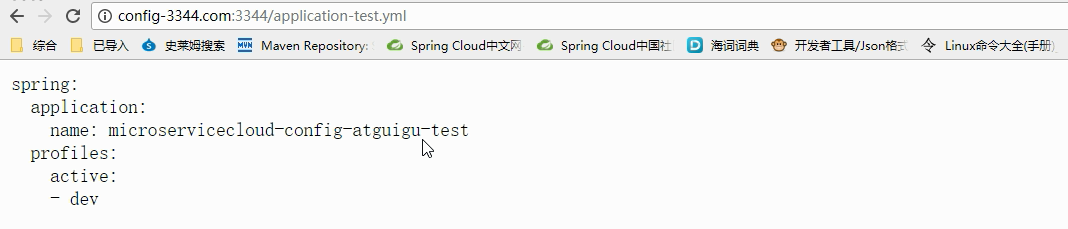 启动3344并自测:http://config-3344.com:3344/application-dev.yml