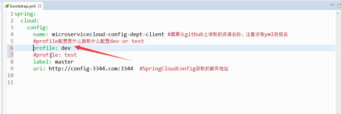 uri: http://config-3344.com:3344 #本微服务启动后先去找3344号服务,通过3344号服务的SpringCloudConfig获取GitHub的服务地址
