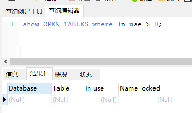 SELECT * FROM INFORMATION_SCHEMA.INNODB_LOCKS;