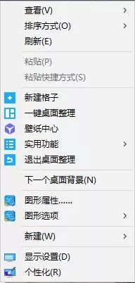 当你安装好软件后,在桌面空白处右击,即可看到如下四个主要功能:新建格子、一键桌面整理、壁纸中心、实用功能。下面对这四个功能简单进行介绍。