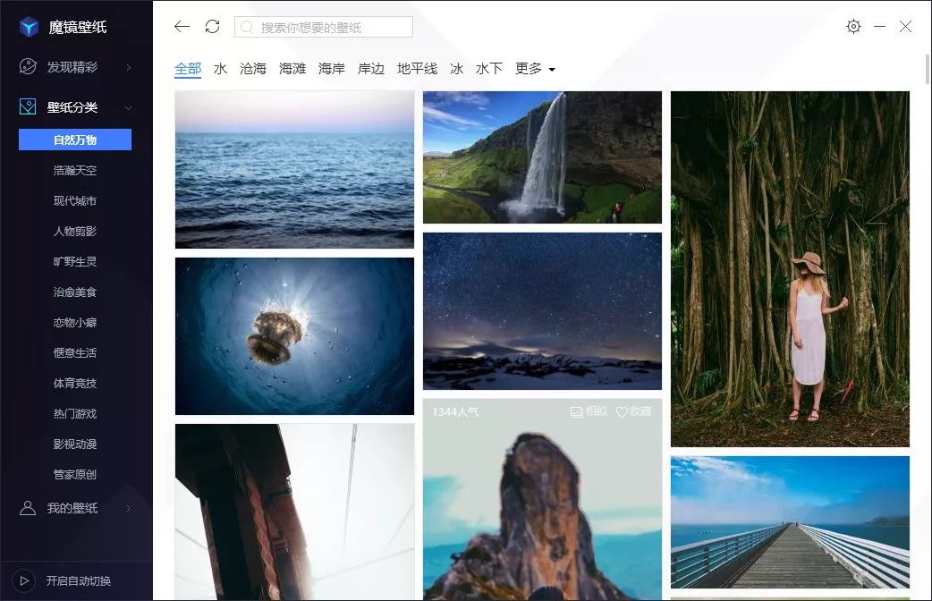当你使用一张壁纸太久想换一张好看壁纸时,可以直接右键选择壁纸中心。这里提供各种分类桌面壁纸。目前都是免费的哦。