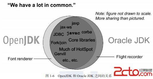 Oracle JDK采用了商业实现,而OpenJDK使用的是开源的FreeType。当然,“相同”是建立在两者共有的组件基础上的,Oracle JDK中还会存在一些Open JDK没有的、商用闭源的功能,例如从JRockit移植改造而来的Java Flight Recorder。预计以后JRockit的MissionControl移植到HotSpot之后,也会以Oracle JDK专有、闭源的形式提供。