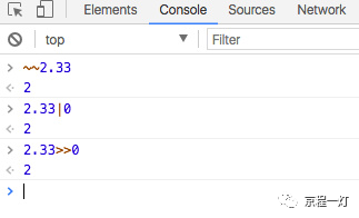 var a = ~~2.33var b= 2.33 | 0var c= 2.33 >> 0