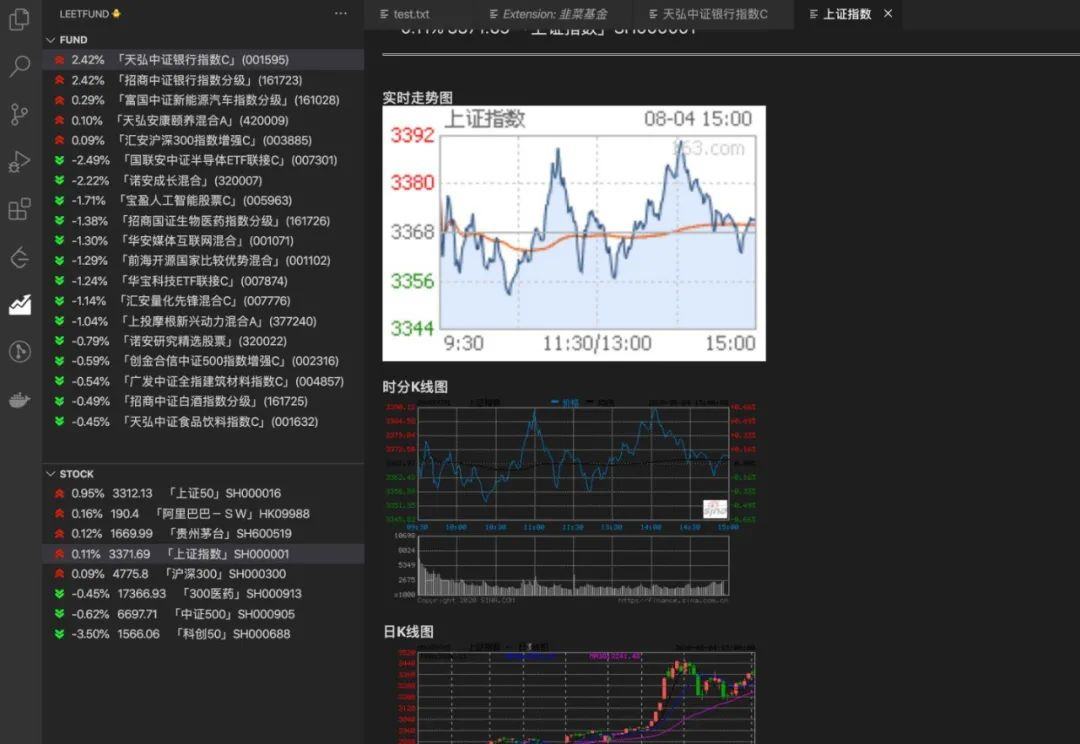 最近,猿妹发现了一个VSCode插件——leek-fund,它可以实时查看股票 & 基金实时数据,还能一秒切换至代码编辑页面,这下开小差也不怕被老板抓包了。