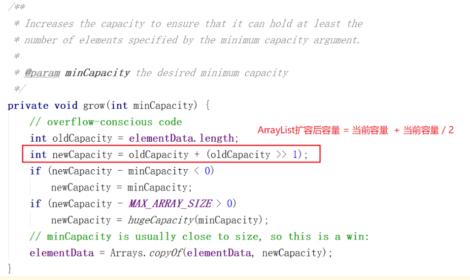 顺便问一句:你知道ArrayList每次扩容的大小吗?我建议你翻一下源码求证一下