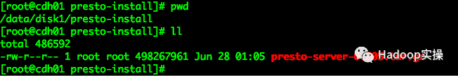 将下载好的presto-server-0.205.tar.gz上传至Presto集群的所有服务器上