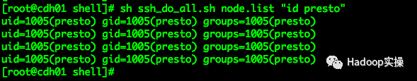 [root@cdh01 shell]# sh ssh_do_all.sh node.list "useradd presto"