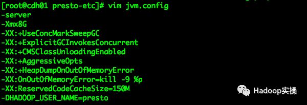 4.修改presto的jvm.config,在配置文件中增加Presto访问HDFS的用户名