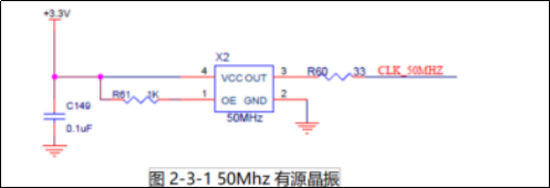 PGL22G 核心板上配有一个 50Mhz 的有源晶振,用于 FPGA 的系统主时钟。晶振输出连接到 FPGA 的时钟输入管脚(Pin B5),这个时钟可以用来驱动FPGA 内的用户逻辑电路,用户可以通过配置 FPGA 内部的 PLLs 来实现更高的时钟。