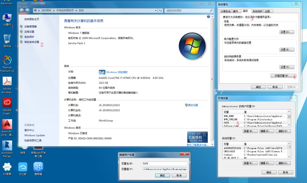 忘记打勾配置:配置全局环境也简单,我的电脑—属性—高级系统设置—高级—环境变量—path—在变量值中输入配置环境变量的目录(各个环境变量目录之间用;隔开)—逐个确定。