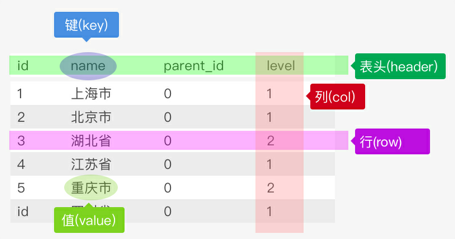 一个数据库中可能包含若干个数据表,每张表是由行和列组成,记录一条数据,数据表就增加一行,每一列是由字段名和字段数据集合组成,列被称之为字段,