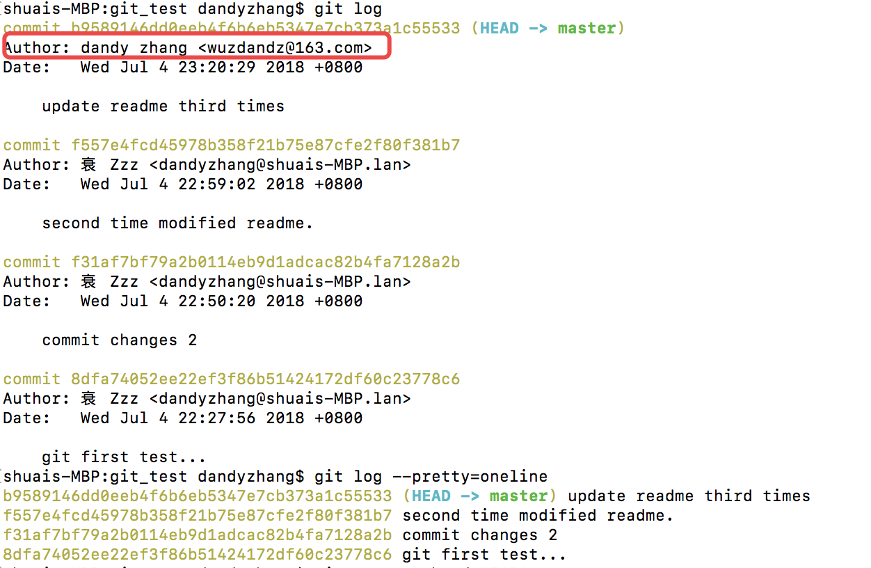 shuais-MacBook-Pro:Test2_From_Github dandyzhang$ git commit -m 'modified readme later'