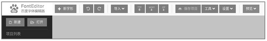 百度字体编辑器 FontEditor (详见 http://fontstore.baidu.com/st... )是一款在线字体编辑软件,能够打开本地或者远程的 ttf、woff、eot、otf 格式的字体文件,具备这些格式字体文件的导入和导出功能,并且提供字形编辑、轮廓编辑和字体实时预览功能,界面如图 6-35 所示。