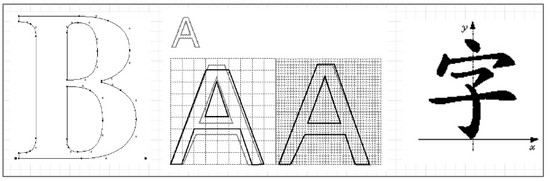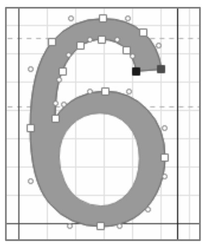 TrueType 字体是苹果公司与微软公司联合开发的一种计算机轮廓字体,TrueType 字体中的每个字形由网格上的一系列点描述,点是字体中的最小单位,字形与点的关系如图 6-37 所示。