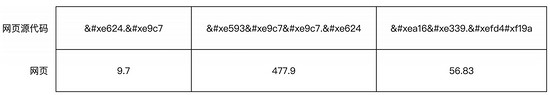 从网页源代码中看到的并不是符号,而是由 开头的一些字符,这与示例 6 中的 SVG 映射反爬虫非常相似。我们将页面显示的数字与网页源代码中的字符进行比较,映射关系如图 6-33 所示。