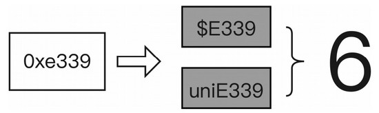 如图 6-42 所示,两个字形的起止坐标和宽高都有很大的差别,但是却能够描述相同的文字,所以字形在画布中的位置并不会影响描述的文字,字形宽度和字形高度也不会影响描述的文字。