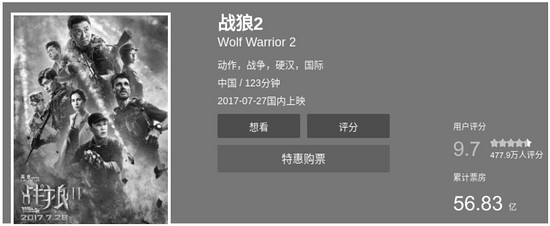 任务:爬取影片信息展示页中的影片评分、评价人数和票房数据,页面内容如图 6-32 所示。
