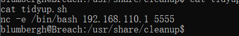 blumbergh@Breach:/usr/share$ cd cleasnup
