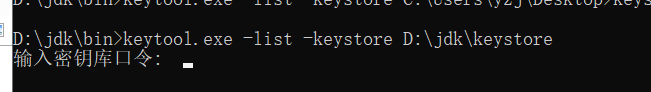 JKS 密钥库使用专用格式。建议使用 "keytool -importkeystore -srckeystore D:\jdk\keystore -destkeystore D:\jdk\keystore -deststoretype pkcs12" 迁移到行业标准格式 PKCS12。