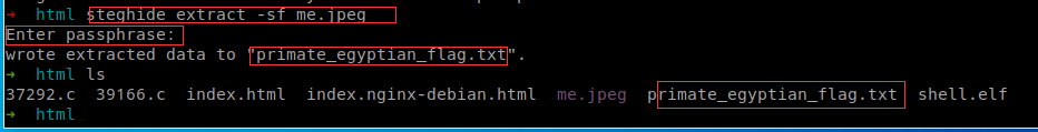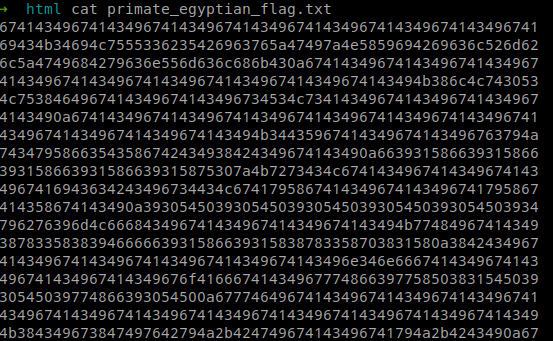 输入图像名reticulatingsplines为密码之后,提权成功,提权到文件primate_egyptian_flag.txt