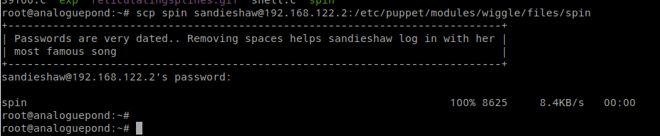 scp spin sandieshaw@192.168.122.2:/etc/puppet/modules/wiggle/files/spin