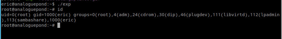 编译成功之后会直接具备可执行权限,直接运行编译之后的脚本,./exp 提权成功