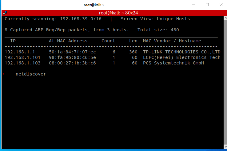 输入命令 netdiscover 获取靶场ip地址为 192.168.1.103