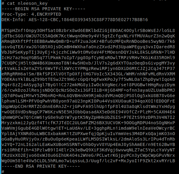 23,查看之后会发现得到一个nleeson_key文件,查看文件,发现是一个私钥文件