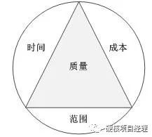 项目管理在PMBOK中有十大领域,分别是范围、进度、成本、质量、人力资源、沟通、风险、资源、采购、干系人以及将他们融合的整合管理。其中最重要的是范、进、质、成四大管理,项目管理铁三角就是以这四个领域为基础的。