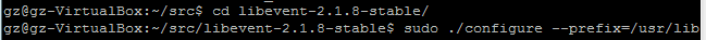cd libevent-2.1.8-stable/ 执行: sudo ./configure --prefix=/usr/lib
