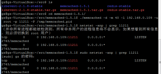 如果发现有一个 11211端口在监听则说明你的服务OK